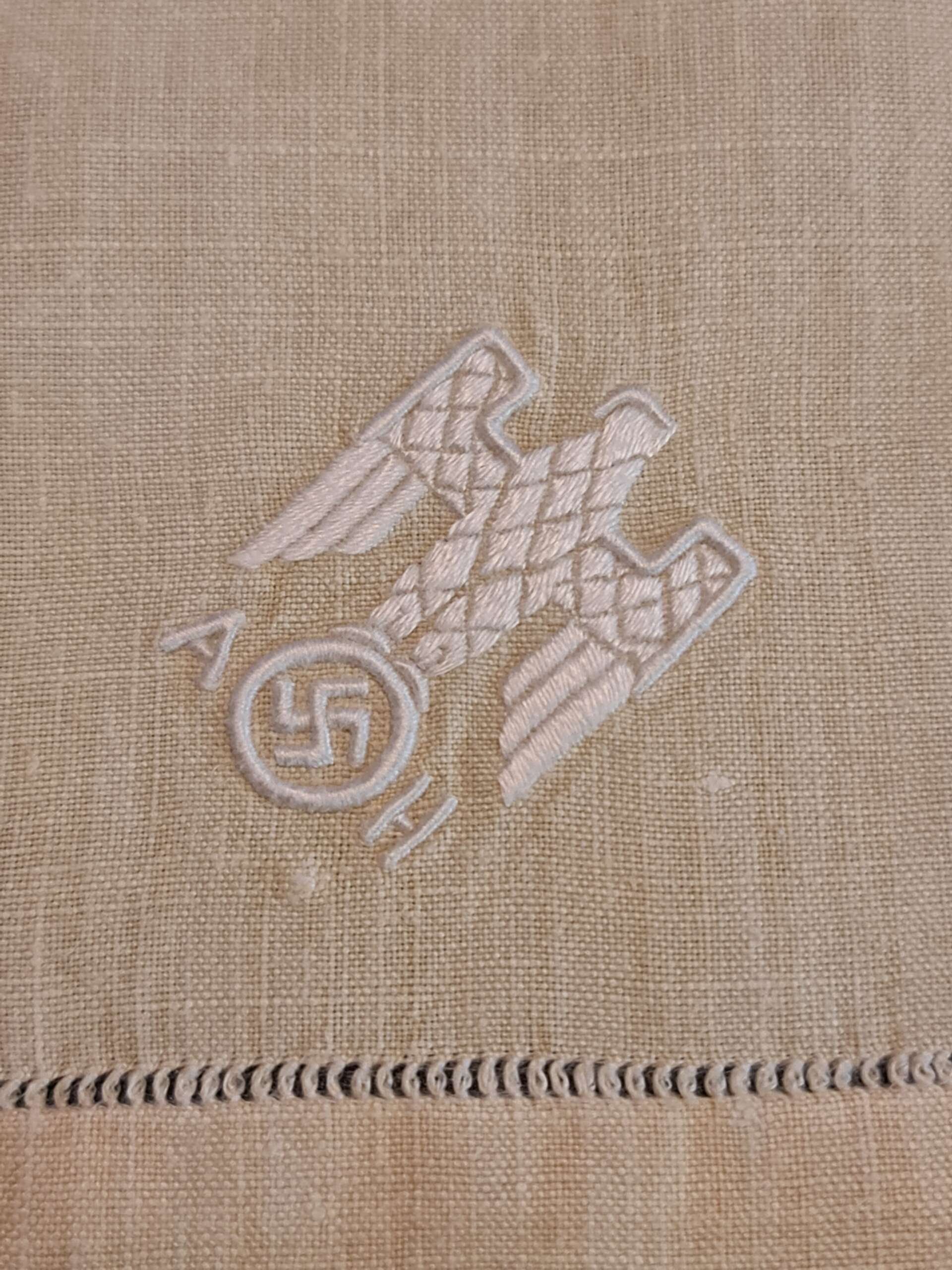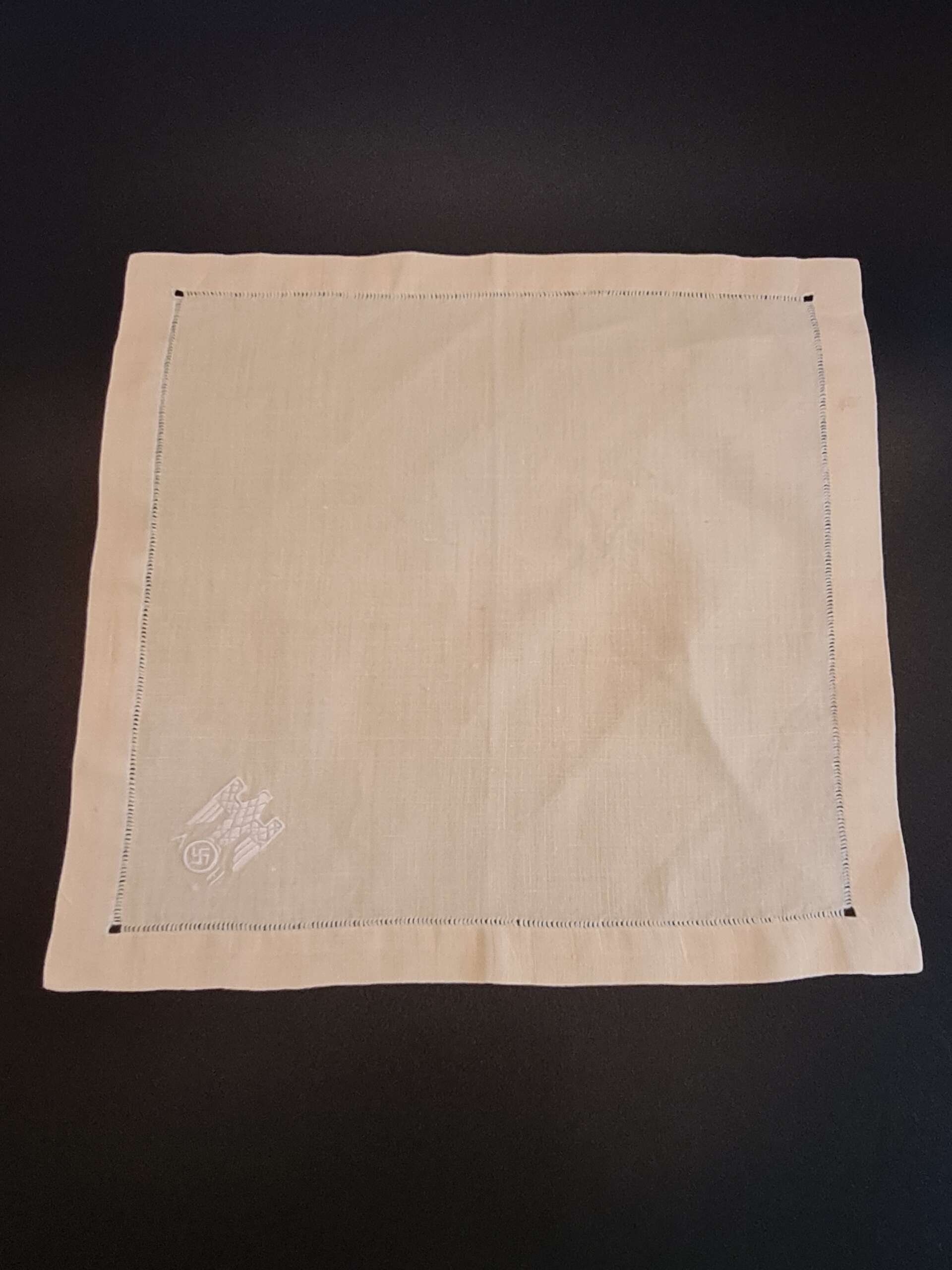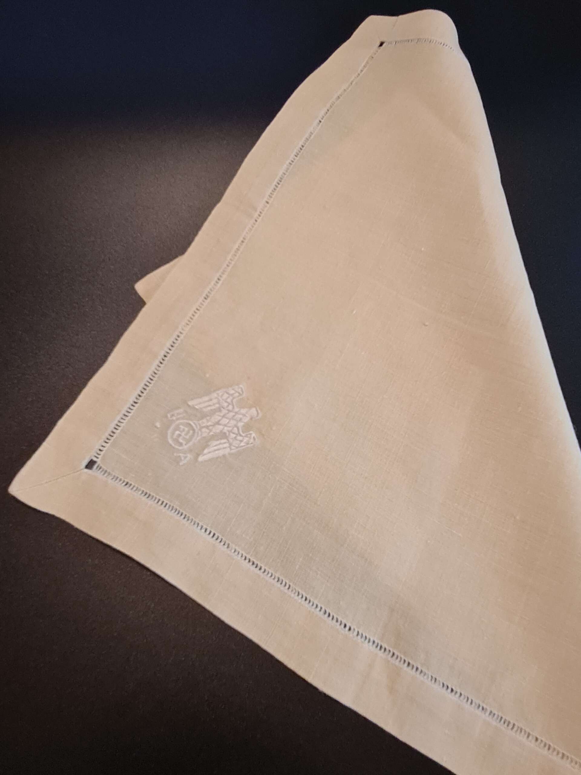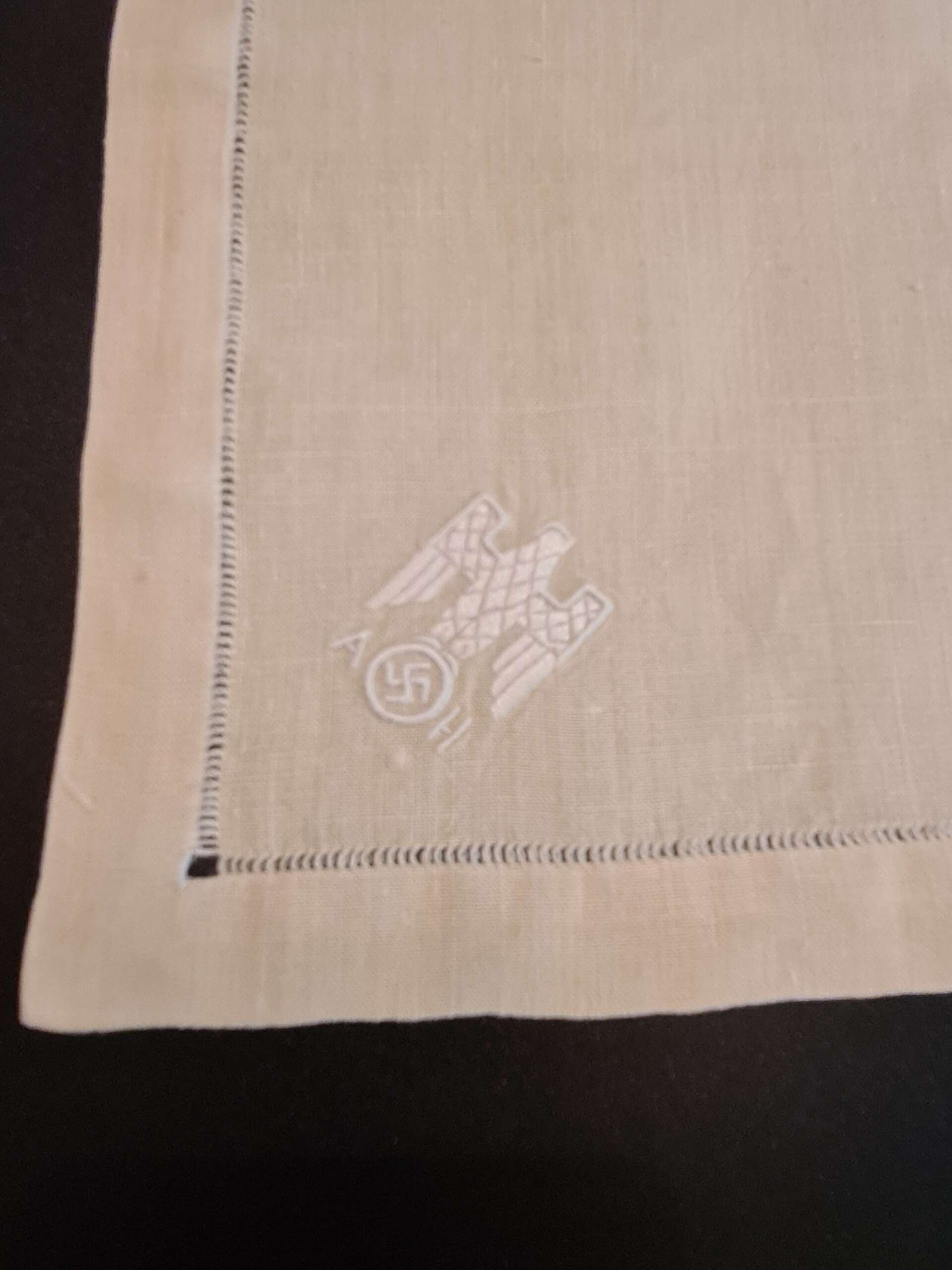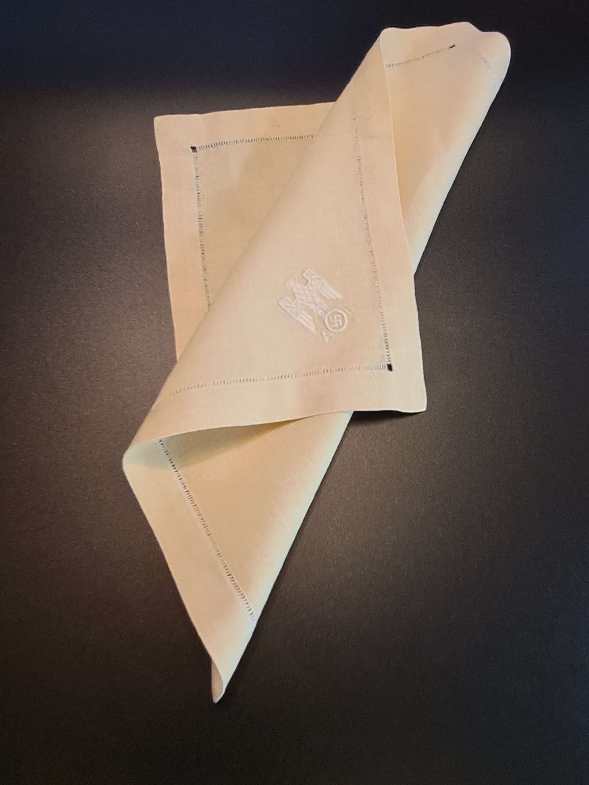 The napkin is in absolutely beautiful condition, has no rips or tears, and is very clean. A tiny cloth ‘pluck’ just below the ‘H’, otherwise the expected cloth creases due to folding which could be ironed out if so desired. The Fuehrer Adler looks spectacular.
